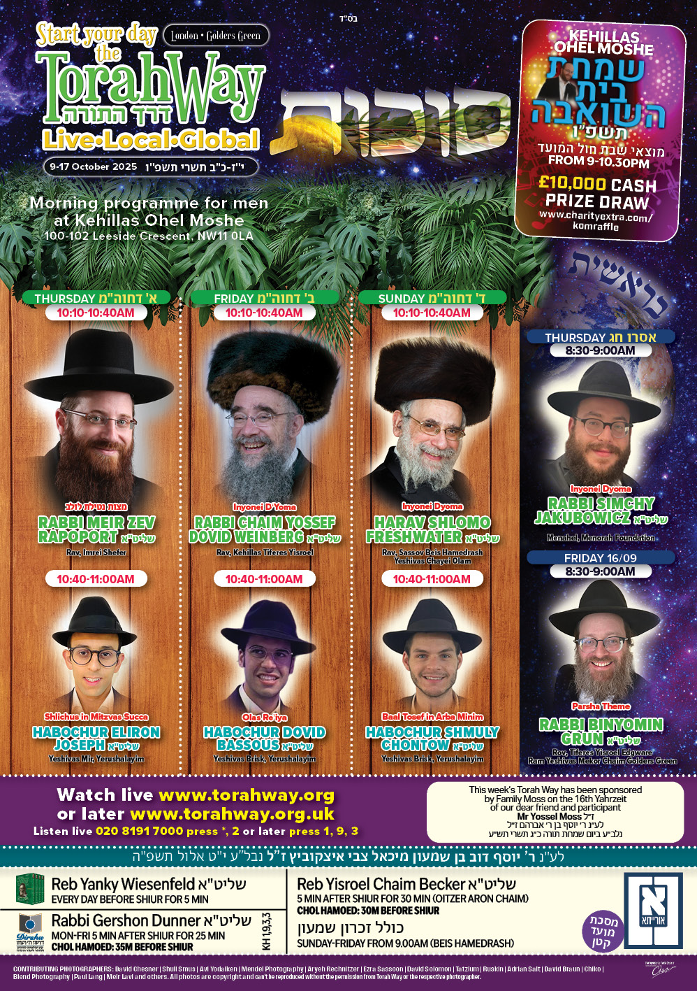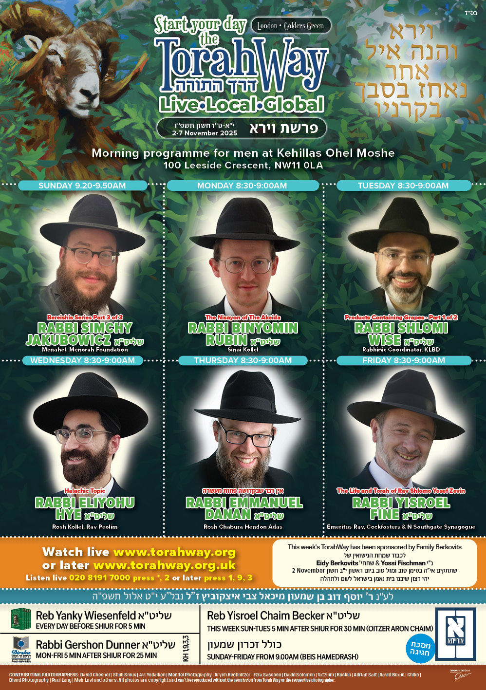 Sponsor a TorahWay week for £250 or sponsor a TorahWay shiur for £36. All donations are welcome and appreciated.