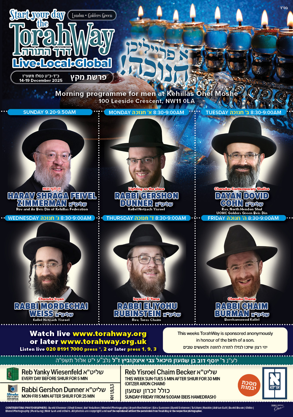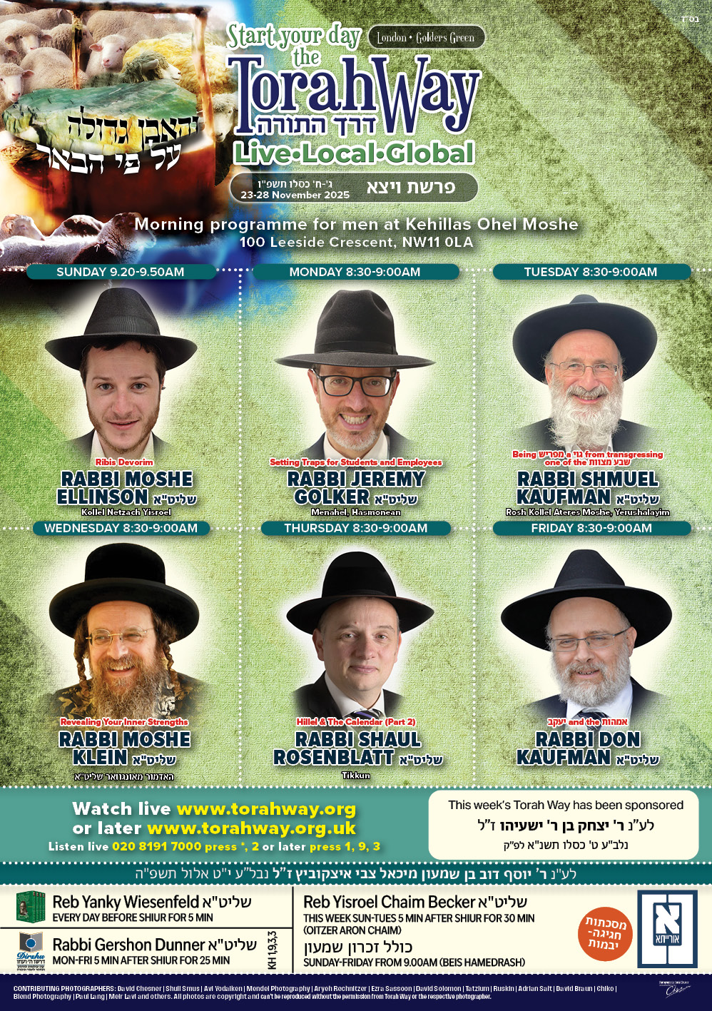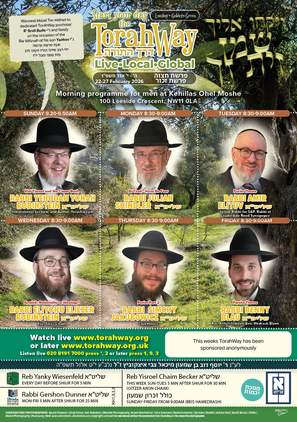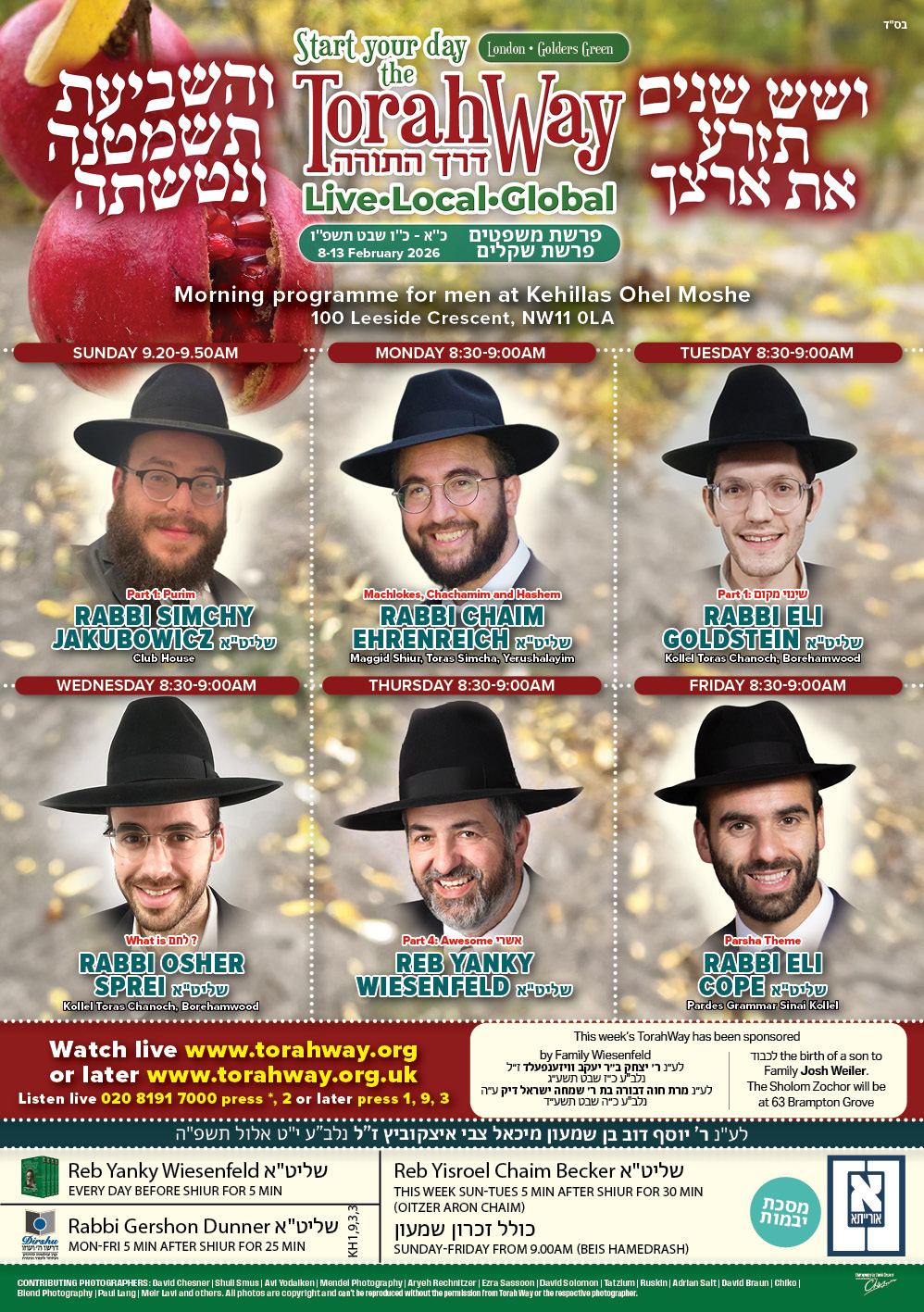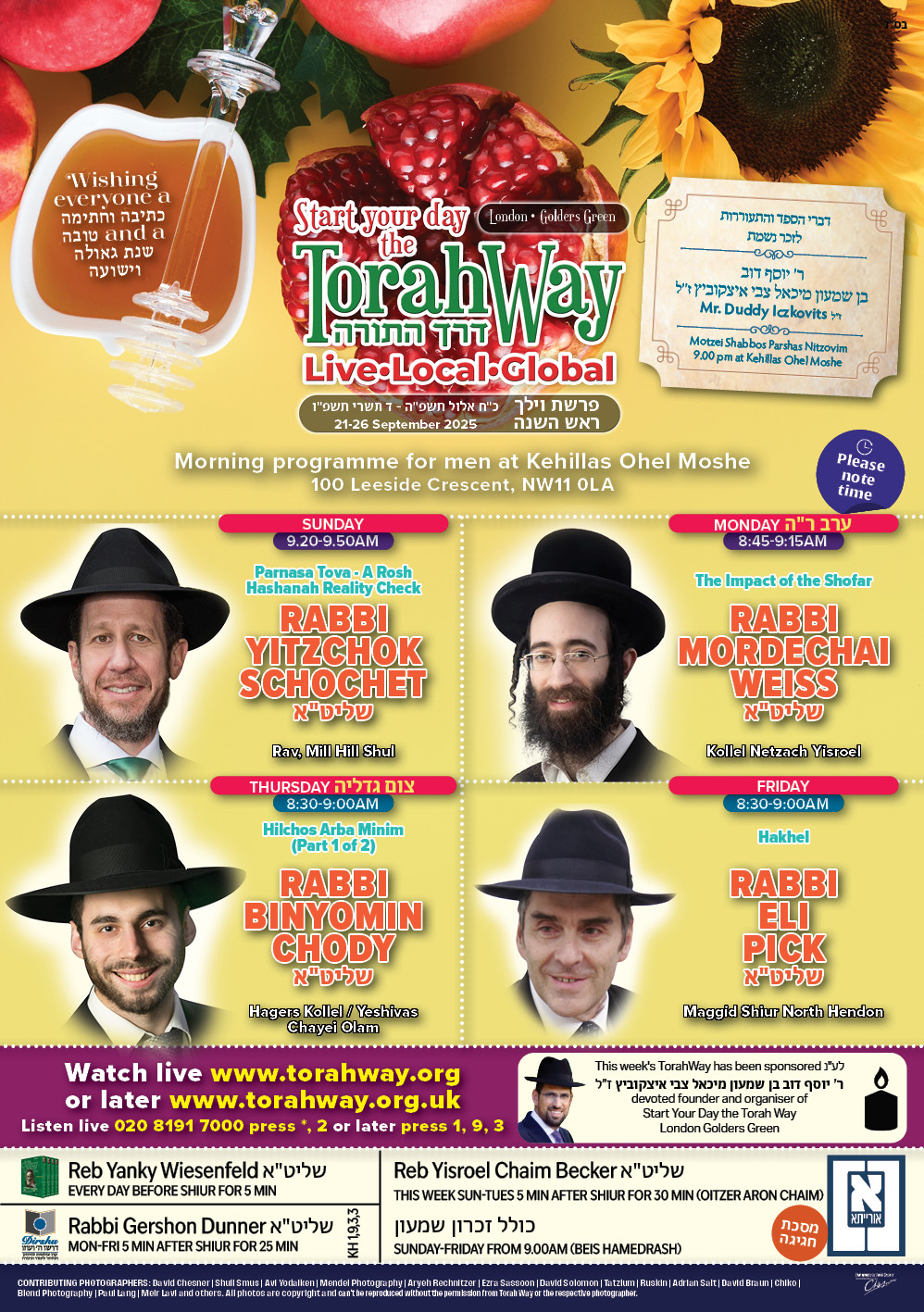 Sponsor a TorahWay week for £250 or sponsor a TorahWay shiur for £36. All donations are welcome and appreciated.