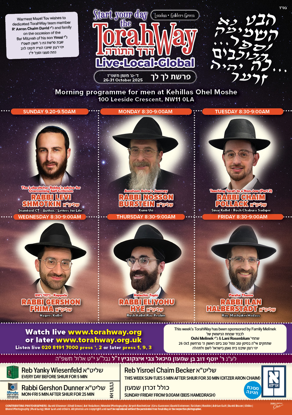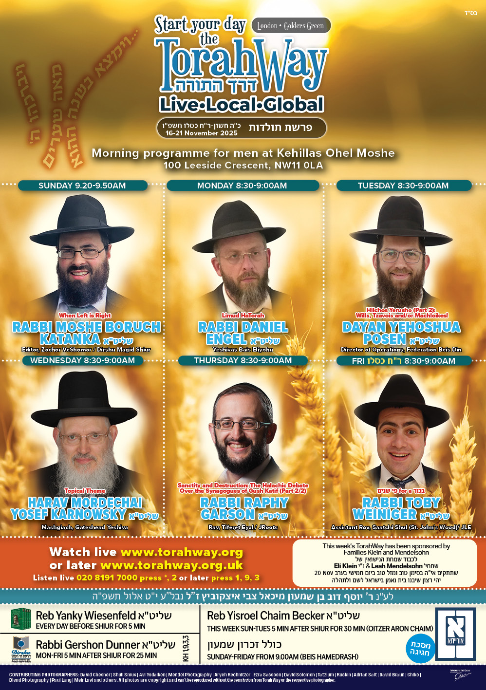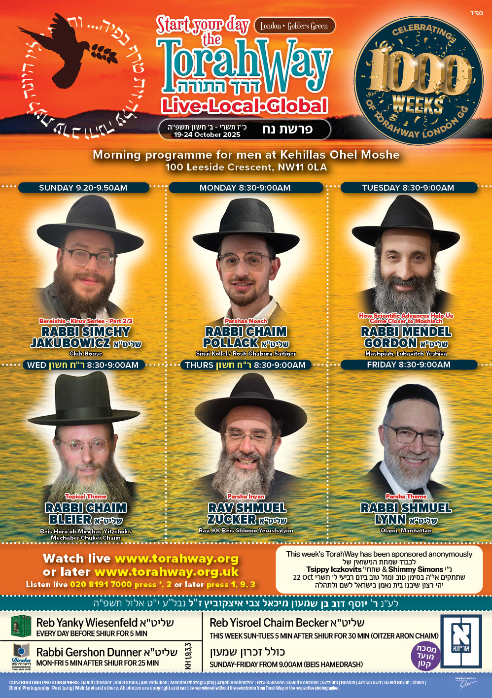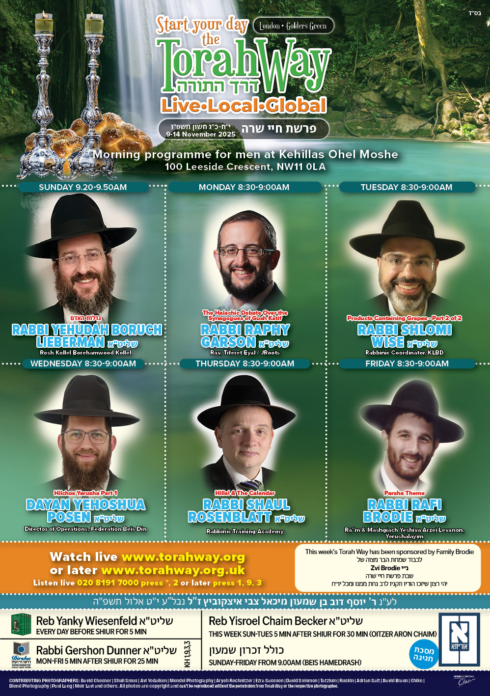 Sponsor a TorahWay week for £250 or sponsor a TorahWay shiur for £36. All donations are welcome and appreciated.